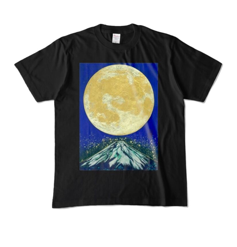 「Pearl fuji」というタイトルの縁起の良い富士山と満月のパワフルな絵柄のTシャツです。
